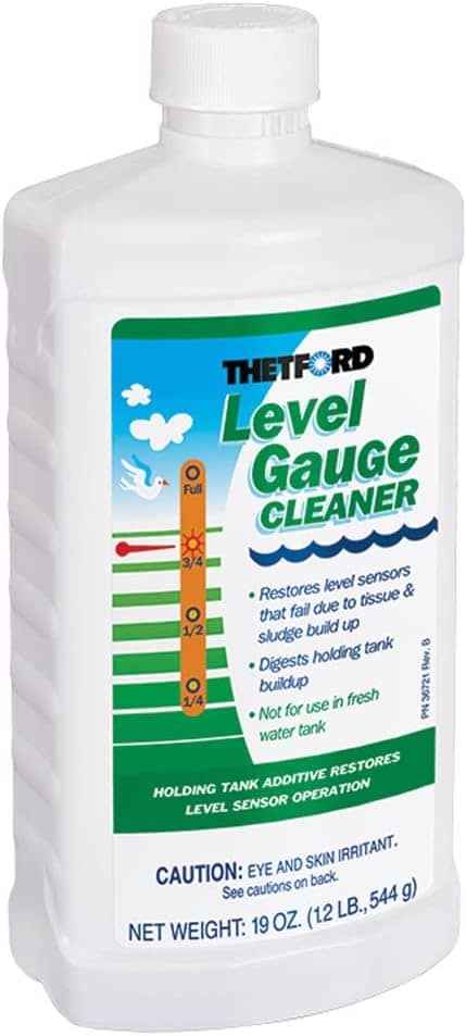 Dustin Simpson writes, "I’m sure at some point you’ve emptied your tanks only to find that your sensors are reading full. Over time, holding tank sensor probes build up with sludge/scum and this is what causes incorrect readings. Thetford’s Level Gauge Cleaner is specially formulated to dissolve tissue, waste, sludge and soap scum buildup and works with both black and gray water tanks on all RVs. It prevents buildups and restores level sensor operation fast. Read more about it here.